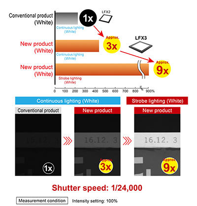 ![]() | LFX3 Series High output to match high-speed inspection The LFX3-series Light Units are high-power Flat Dome Lights perfect for fast-moving production lines. The brightness of the white lights has been tripled. | ![]() |