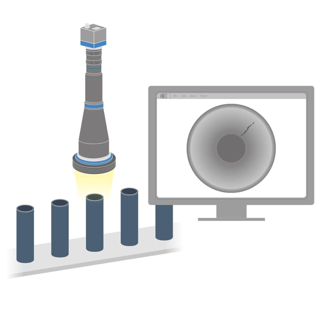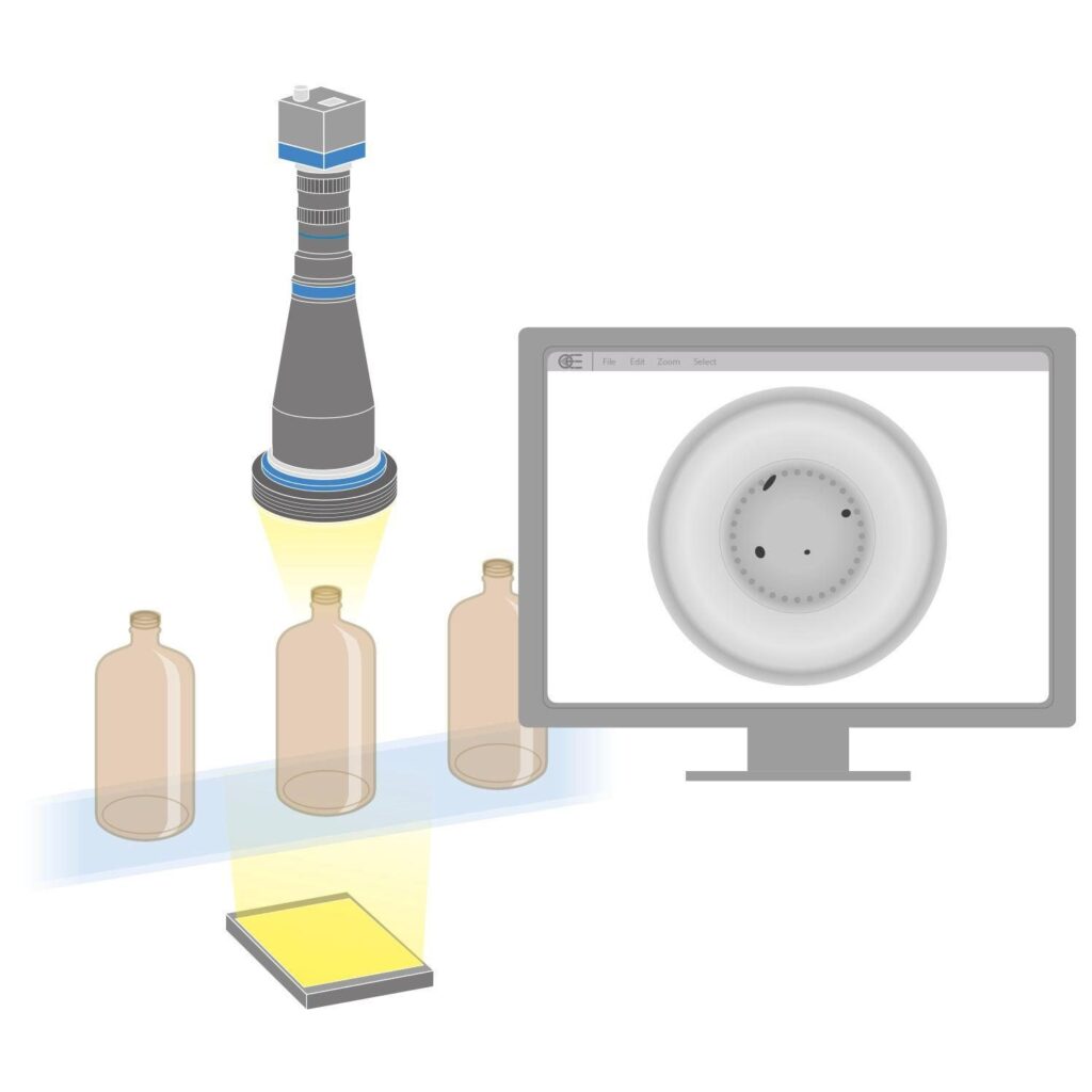 Hypercentric lenses innovative optical design has been optimized to image inner defects in containers, specifically for the beverage, pharma and cosmetics industries but also to generally inspect hollow objects in many other industry sectors.