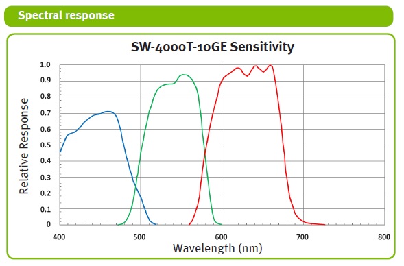 The SW-4000T-10GE combines the color accuracy of prism technology with a super fast 10 GigE interface providing true RGB output at up to 97 kHz or YUV output at up to 145 kHz. Intelligent auto-negotiation adjusts to support NBASE-T speeds (5 GigE / 2.5 GigE), as well as traditional 1 Gbps GigE Vision output.